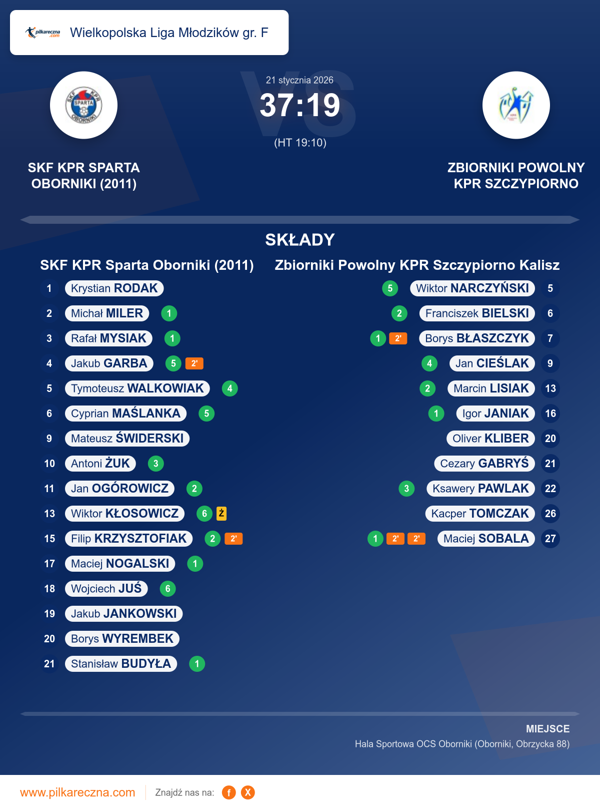 SKF KPR Sparta Oborniki (2011) 37–19 Zbiorniki Powolny KPR Szczypiorno Kalisz