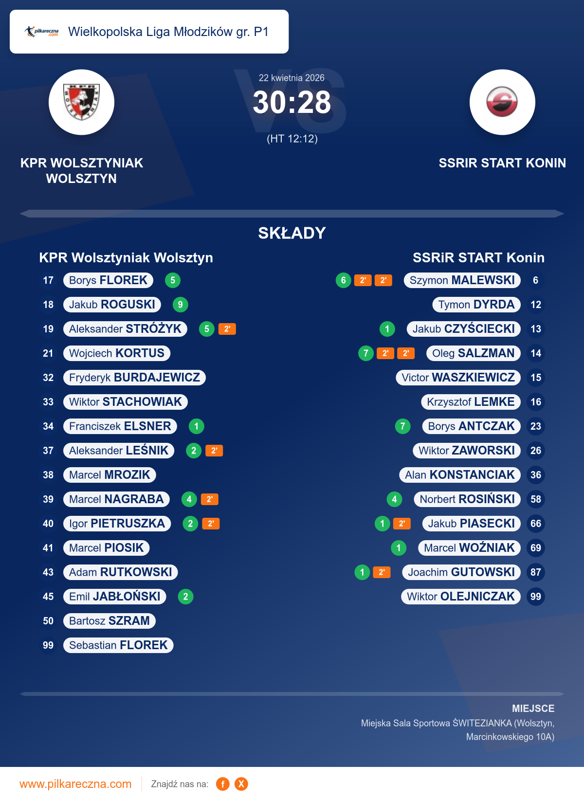 KPR Wolsztyniak Wolsztyn 30–28 SSRiR START Konin