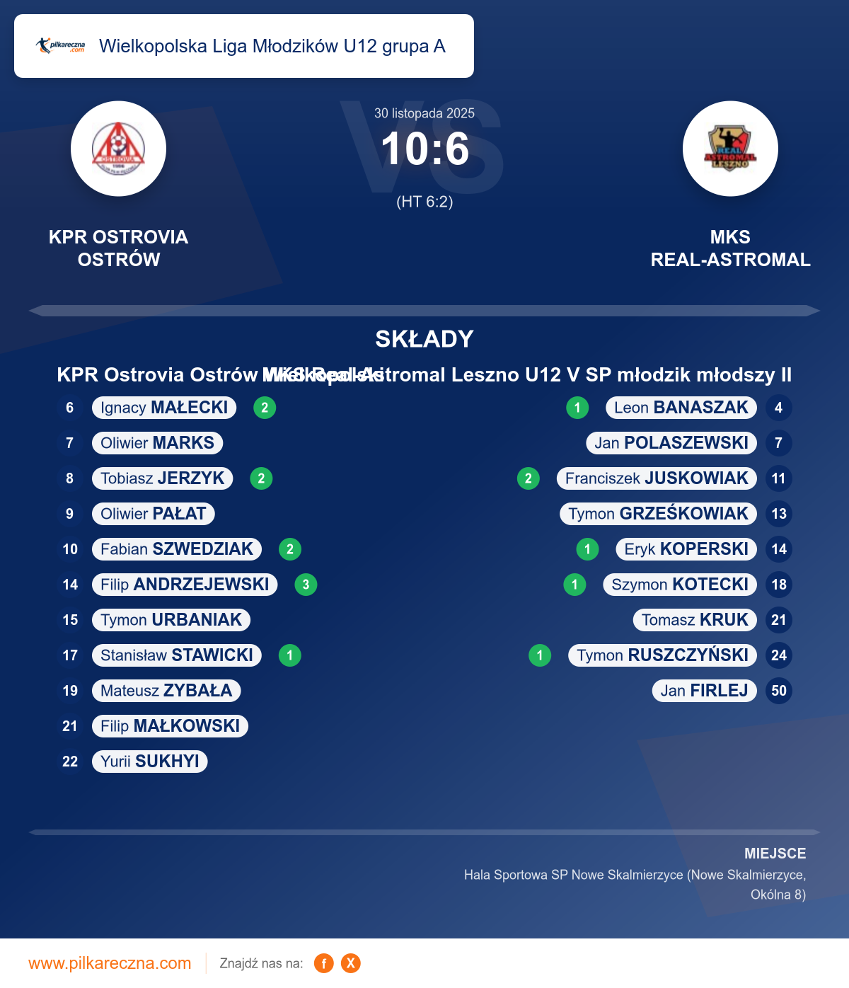 KPR Ostrovia Ostrów Wielkopolski 10–6 MKS Real-Astromal Leszno U12 V SP młodzik młodszy II