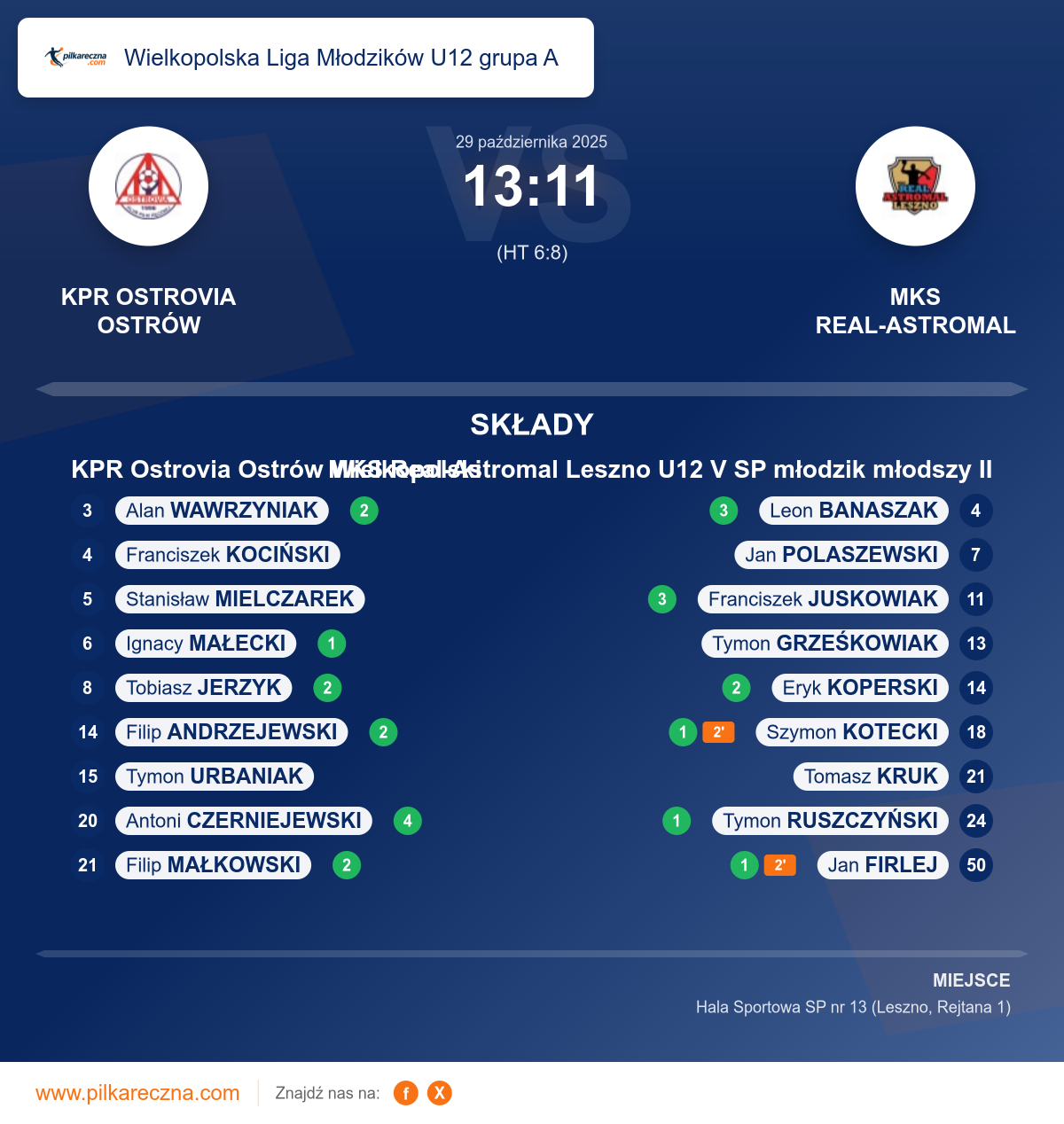 KPR Ostrovia Ostrów Wielkopolski 13–11 MKS Real-Astromal Leszno U12 V SP młodzik młodszy II