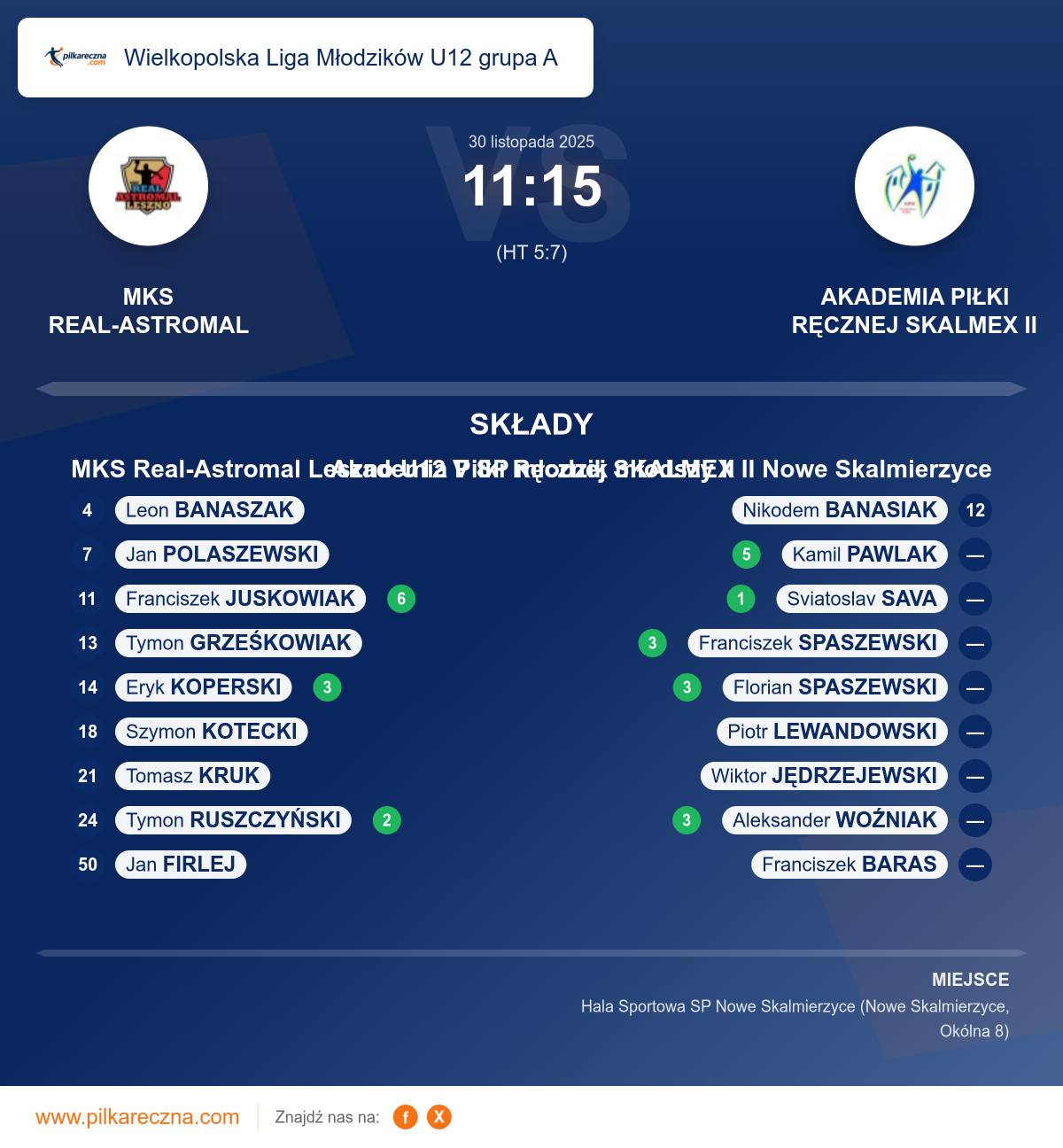 MKS Real-Astromal Leszno U12 V SP młodzik młodszy II — Akademia Piłki Ręcznej SKALMEX II Nowe Skalmierzyce