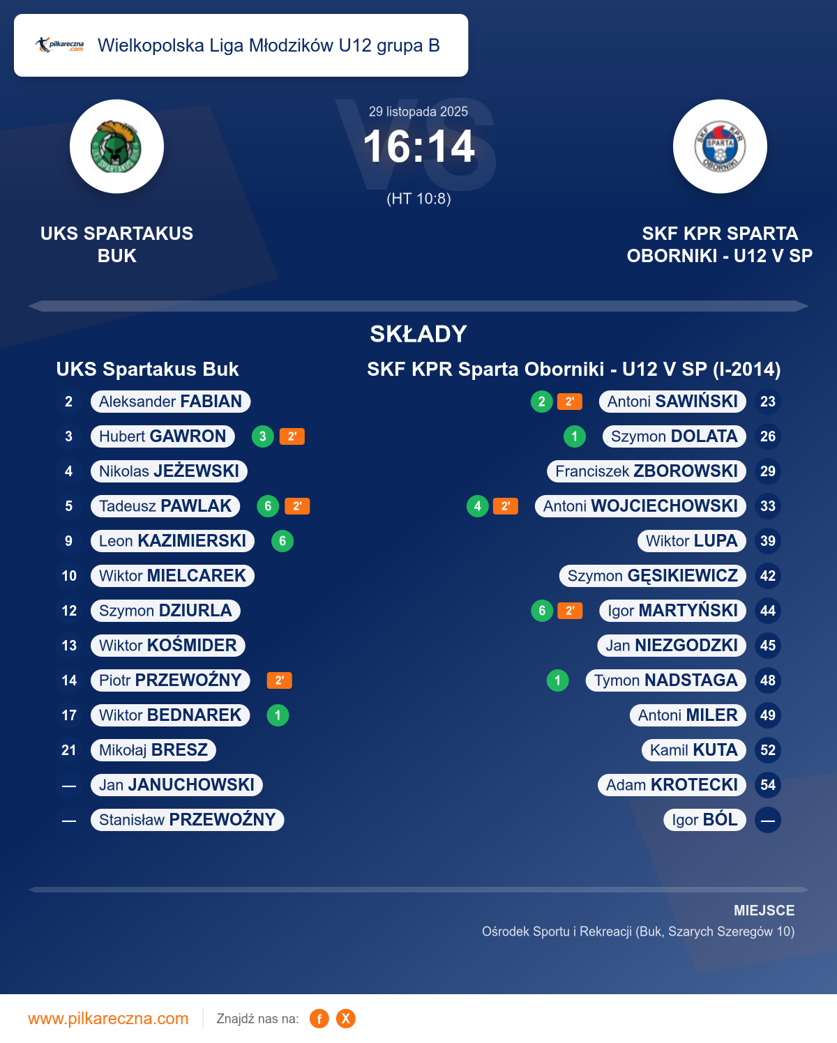 UKS Spartakus Buk 16–14 SKF KPR Sparta Oborniki - U12 V SP (I-2014)