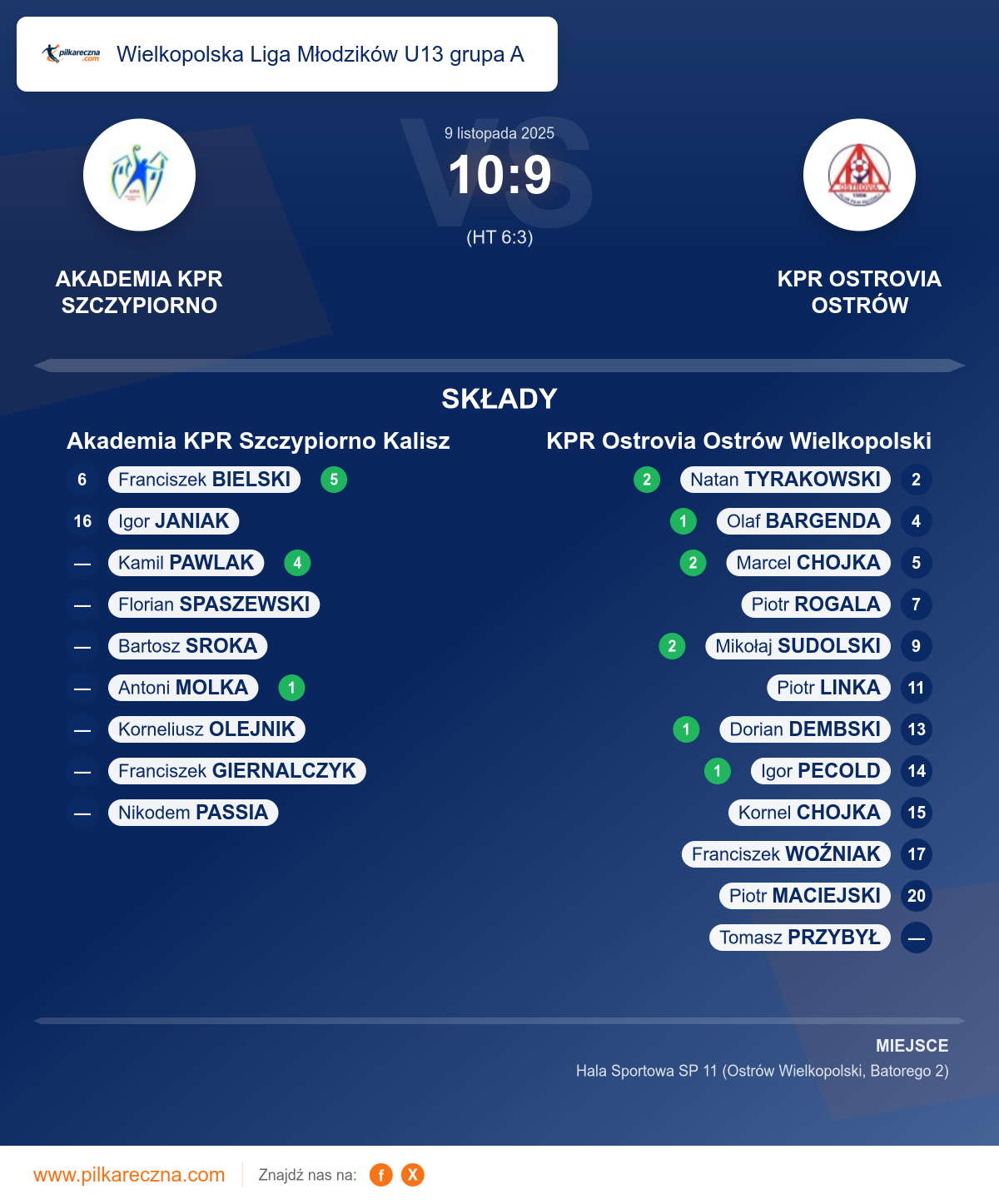 Wynik: 10–9 (HT 6–3)