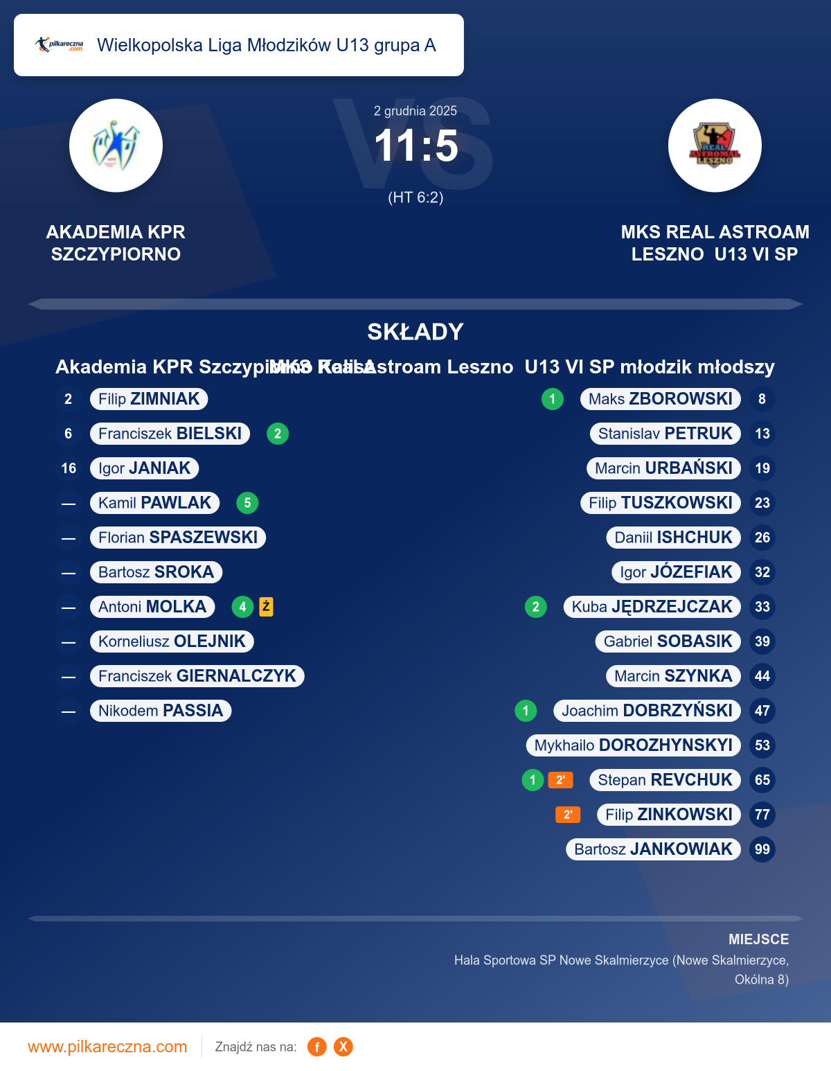 Akademia KPR Szczypiorno Kalisz 11–5 MKS Real Astroam Leszno U13 VI SP młodzik młodszy