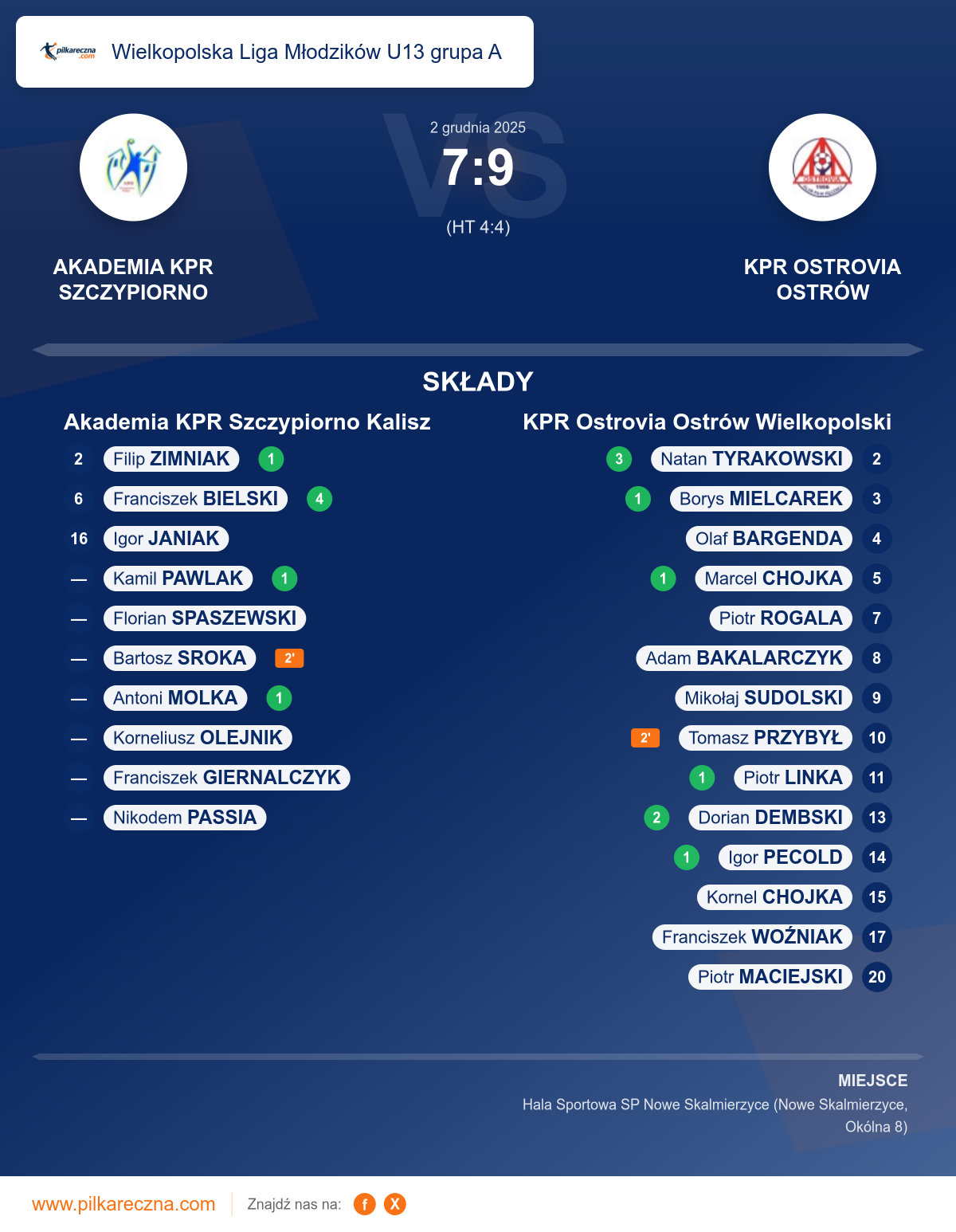 Wynik: 7–9 (HT 4–4)
