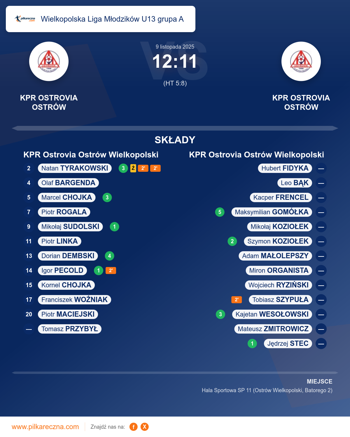 KPR Ostrovia Ostrów Wielkopolski 12–11 KPR Ostrovia Ostrów Wielkopolski