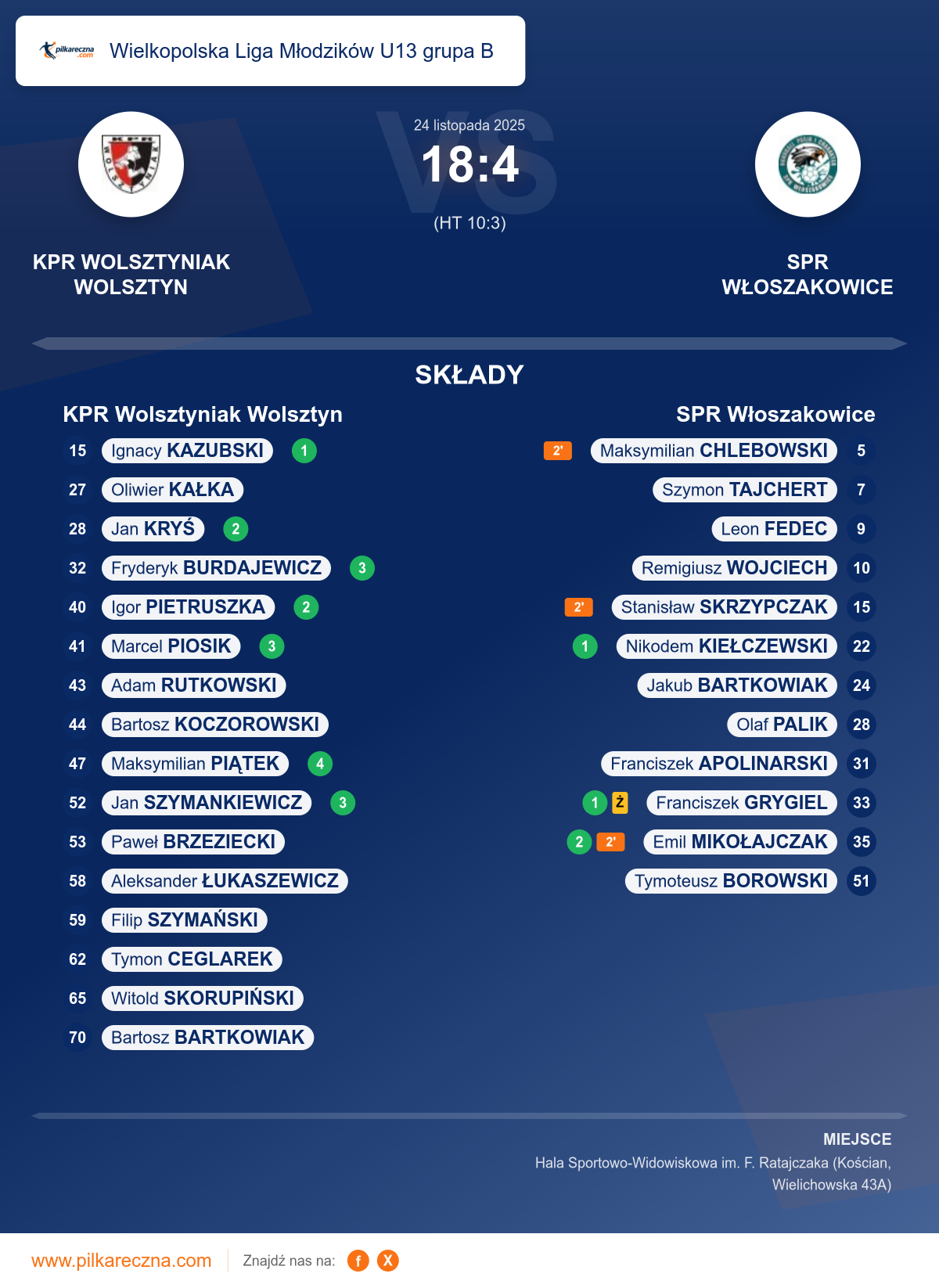 KPR Wolsztyniak Wolsztyn 18–4 SPR Włoszakowice
