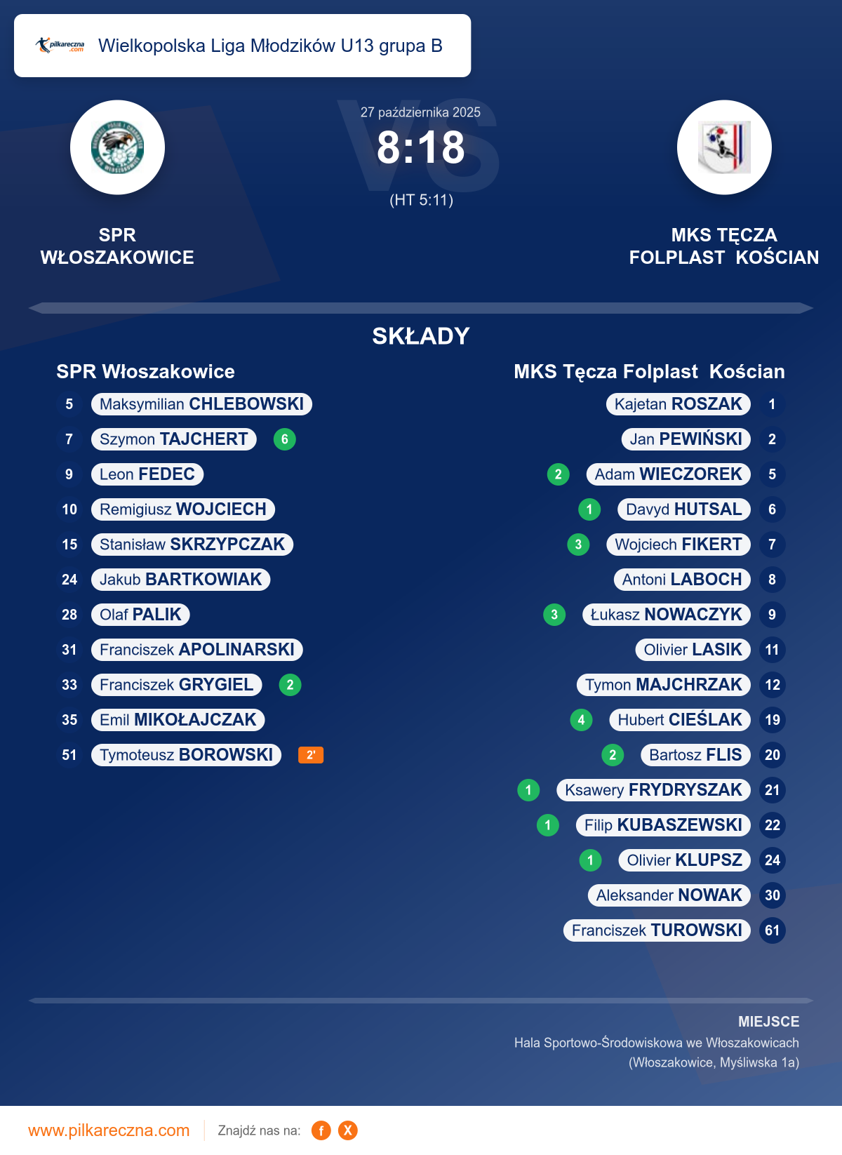 SPR Włoszakowice 8–18 MKS Tęcza Folplast Kościan