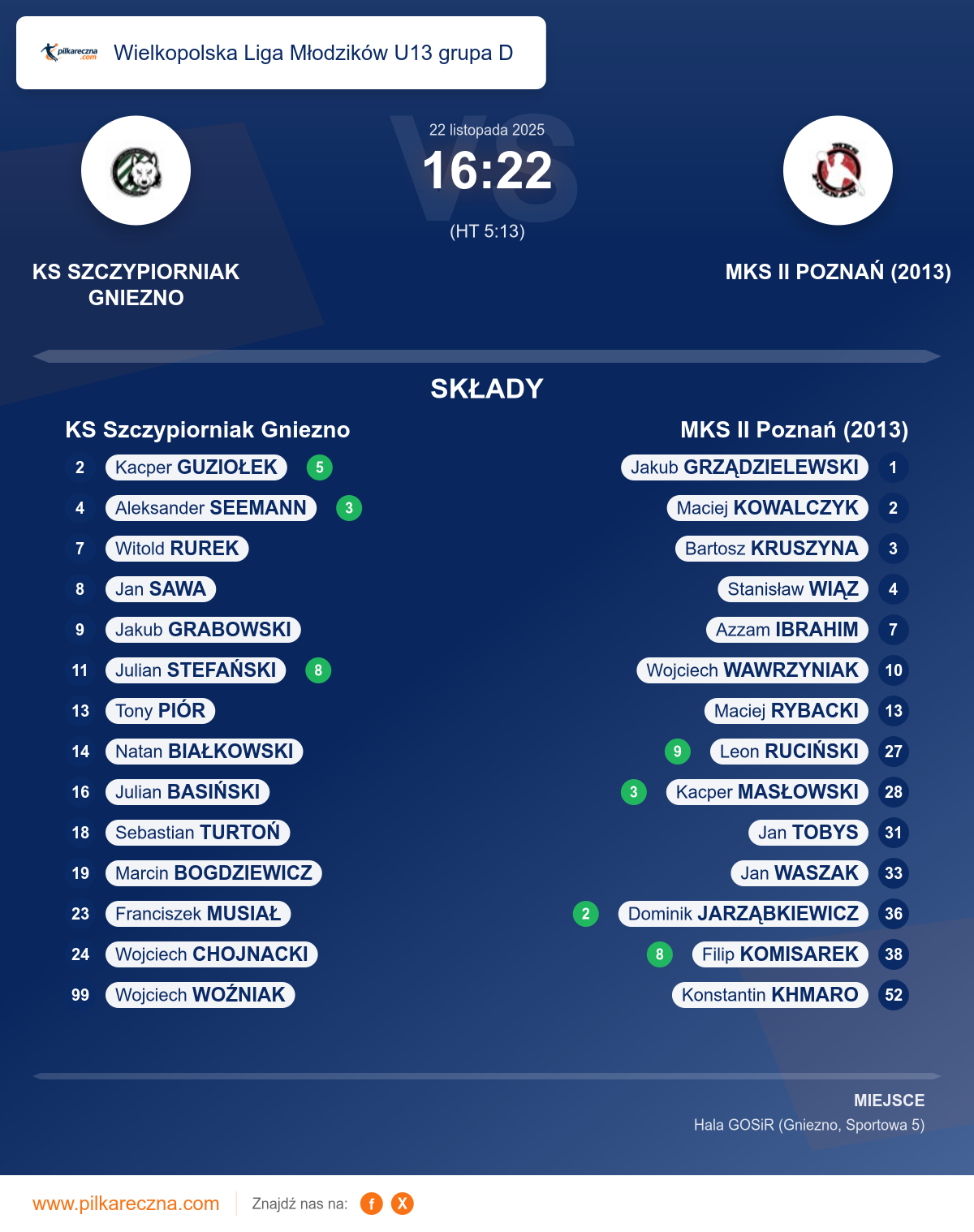 KS Szczypiorniak Gniezno 16–22 MKS II Poznań (2013)