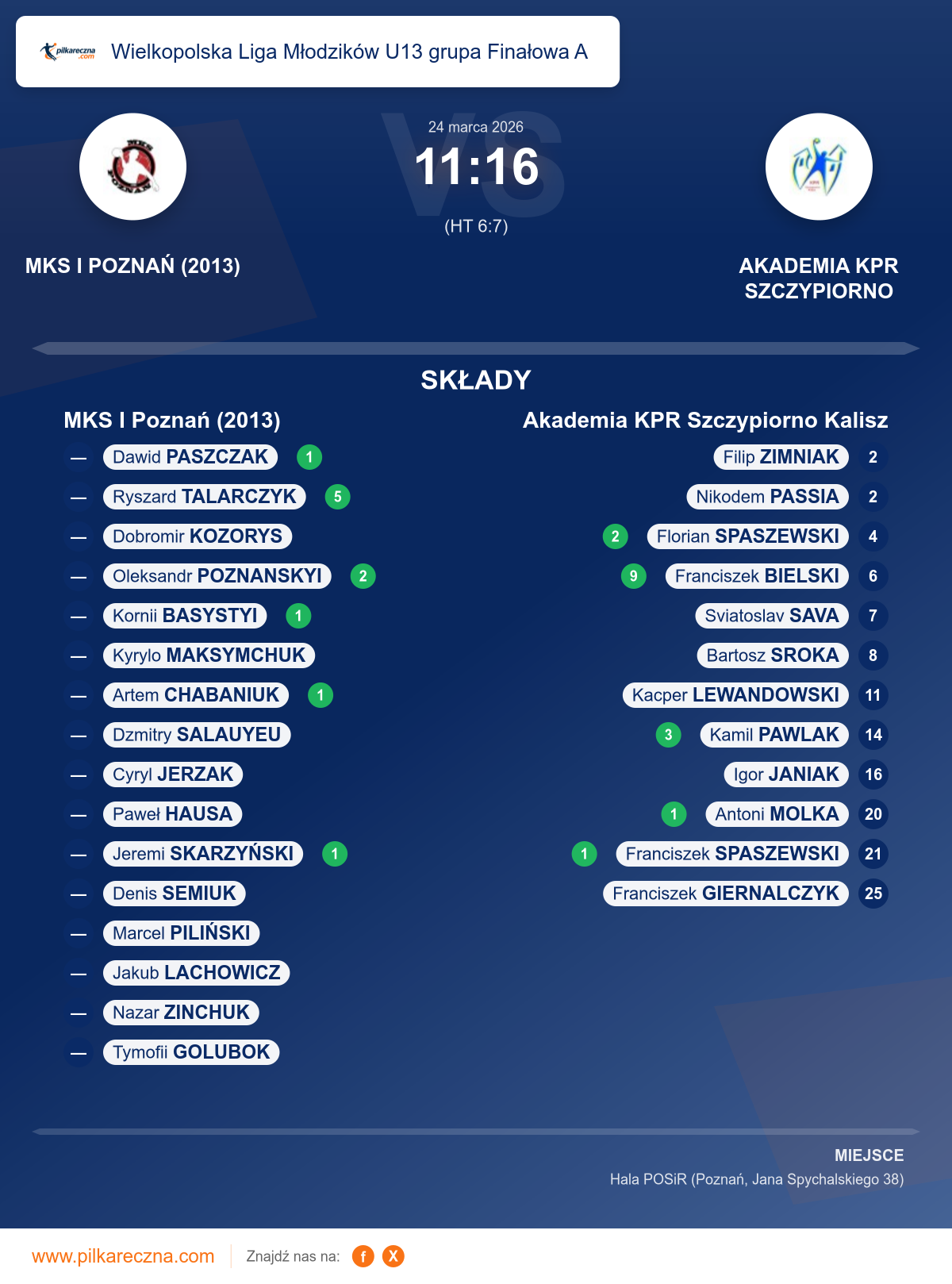Zawodnicy: Franciszek Bielski (9), Kamil Pawlak (3), Florian Spaszewski (2), Antoni Molka (1), Franciszek Spaszewski (1), Bartosz Sroka, Filip Zimniak, Franciszek Giernalczyk, Kacper Lewandowski, Nikodem Passia, Sviatoslav Sava