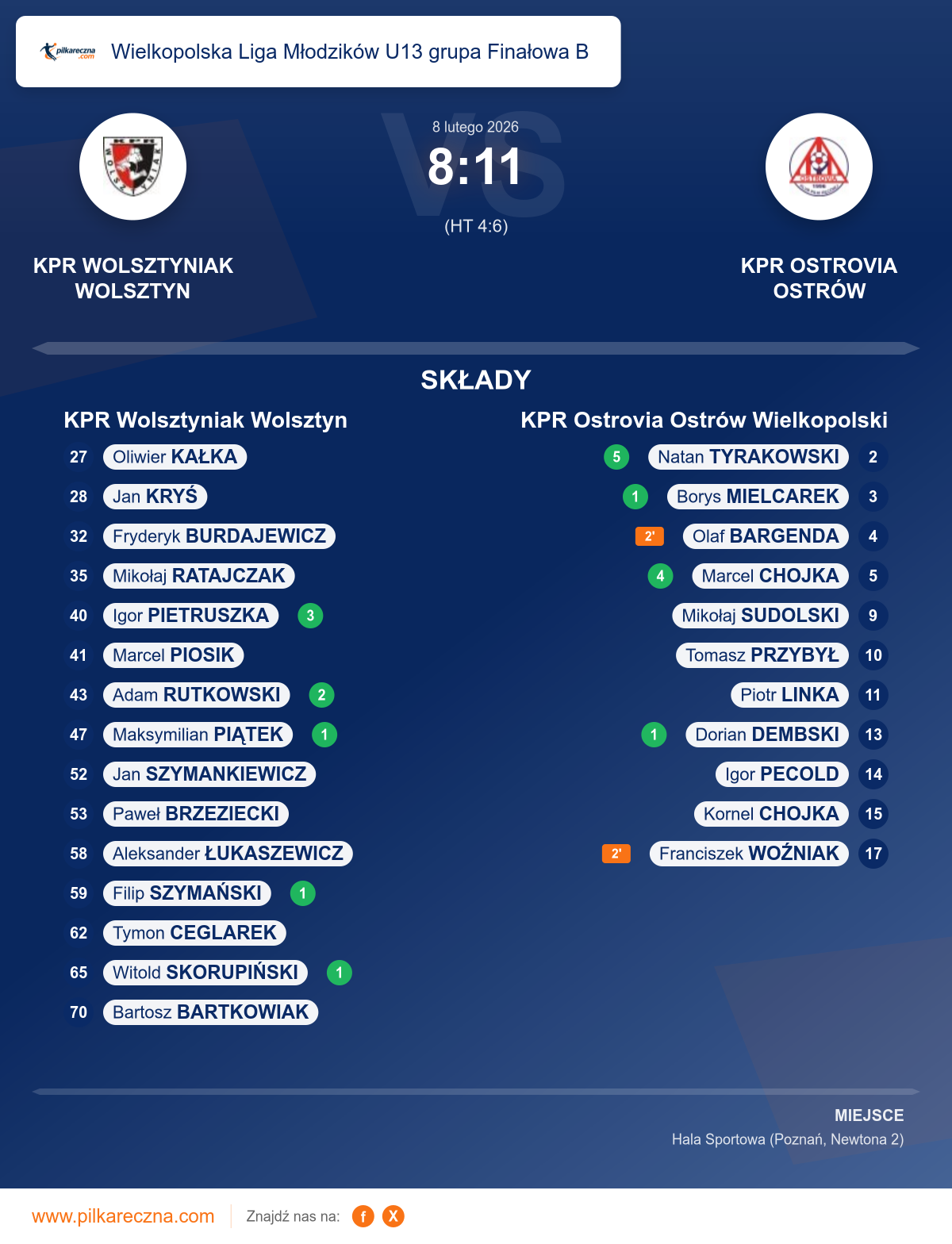 KPR Wolsztyniak Wolsztyn 8–11 KPR Ostrovia Ostrów Wielkopolski