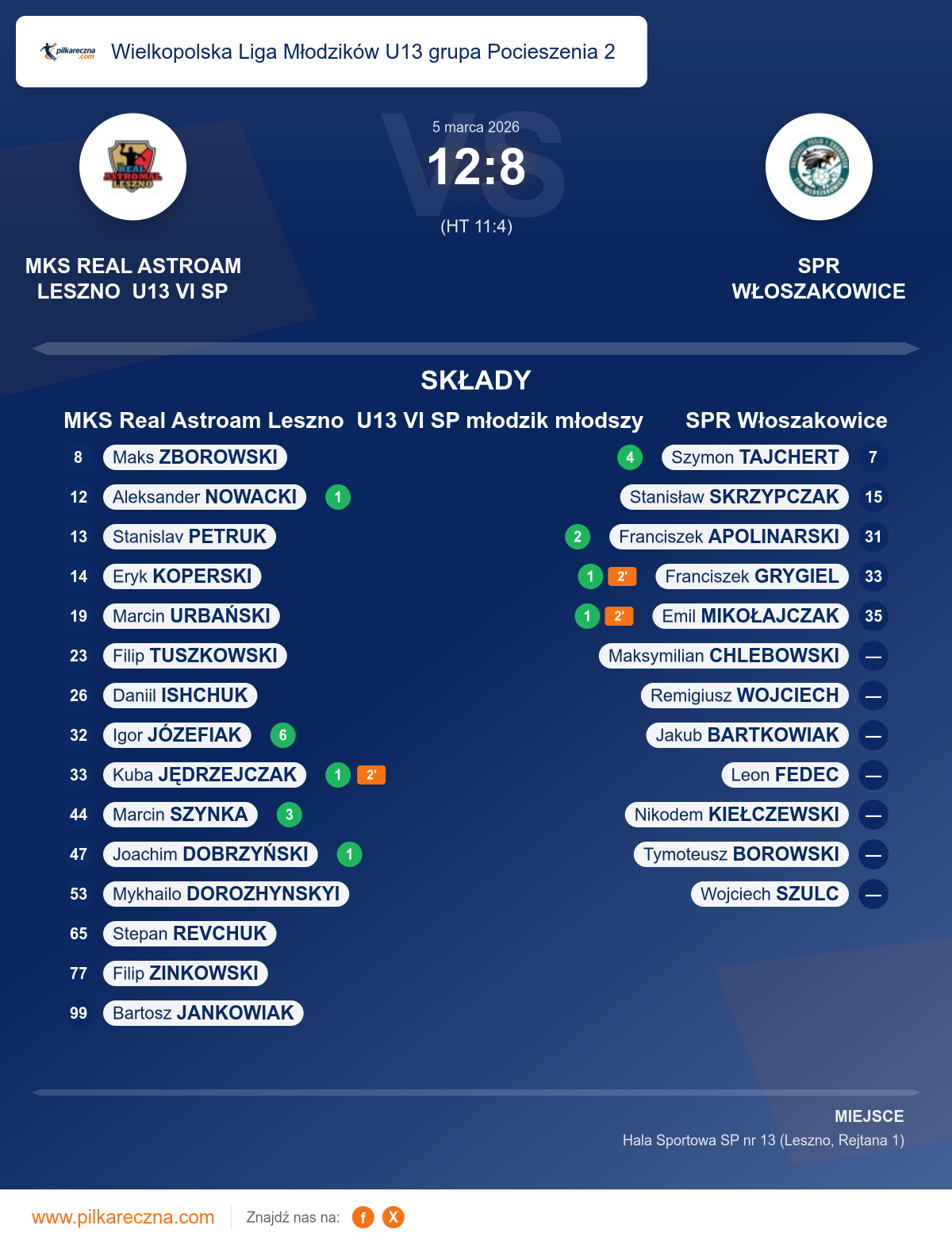 MKS Real Astroam Leszno U13 VI SP młodzik młodszy 12–8 SPR Włoszakowice