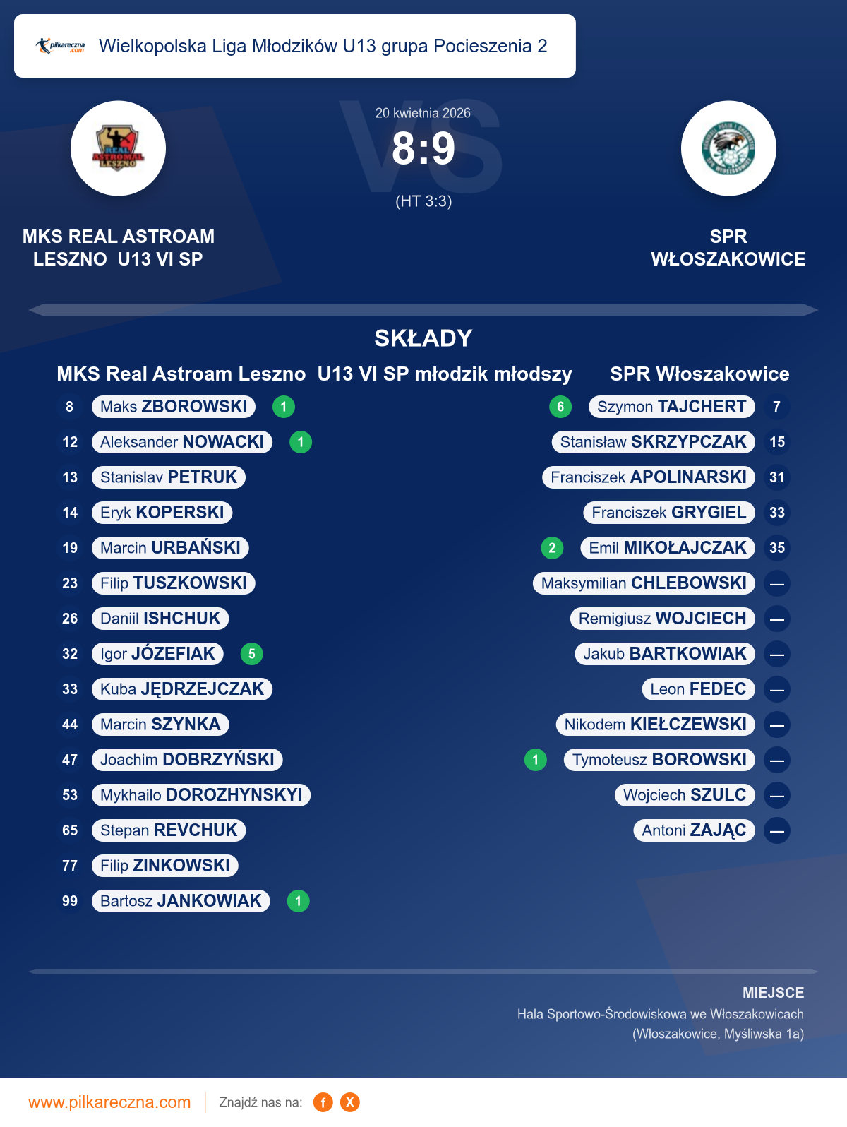 MKS Real Astroam Leszno U13 VI SP młodzik młodszy — SPR Włoszakowice