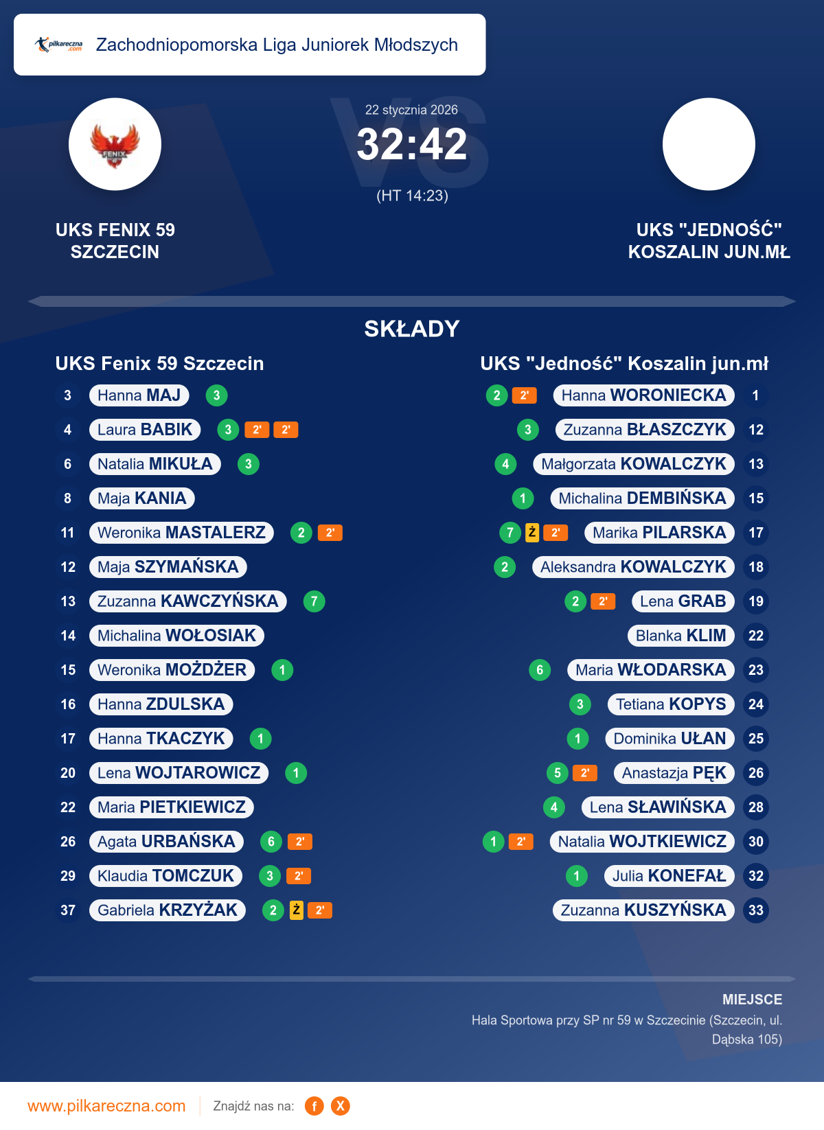 UKS Fenix 59 Szczecin 32–42 UKS "Jedność" Koszalin jun.mł