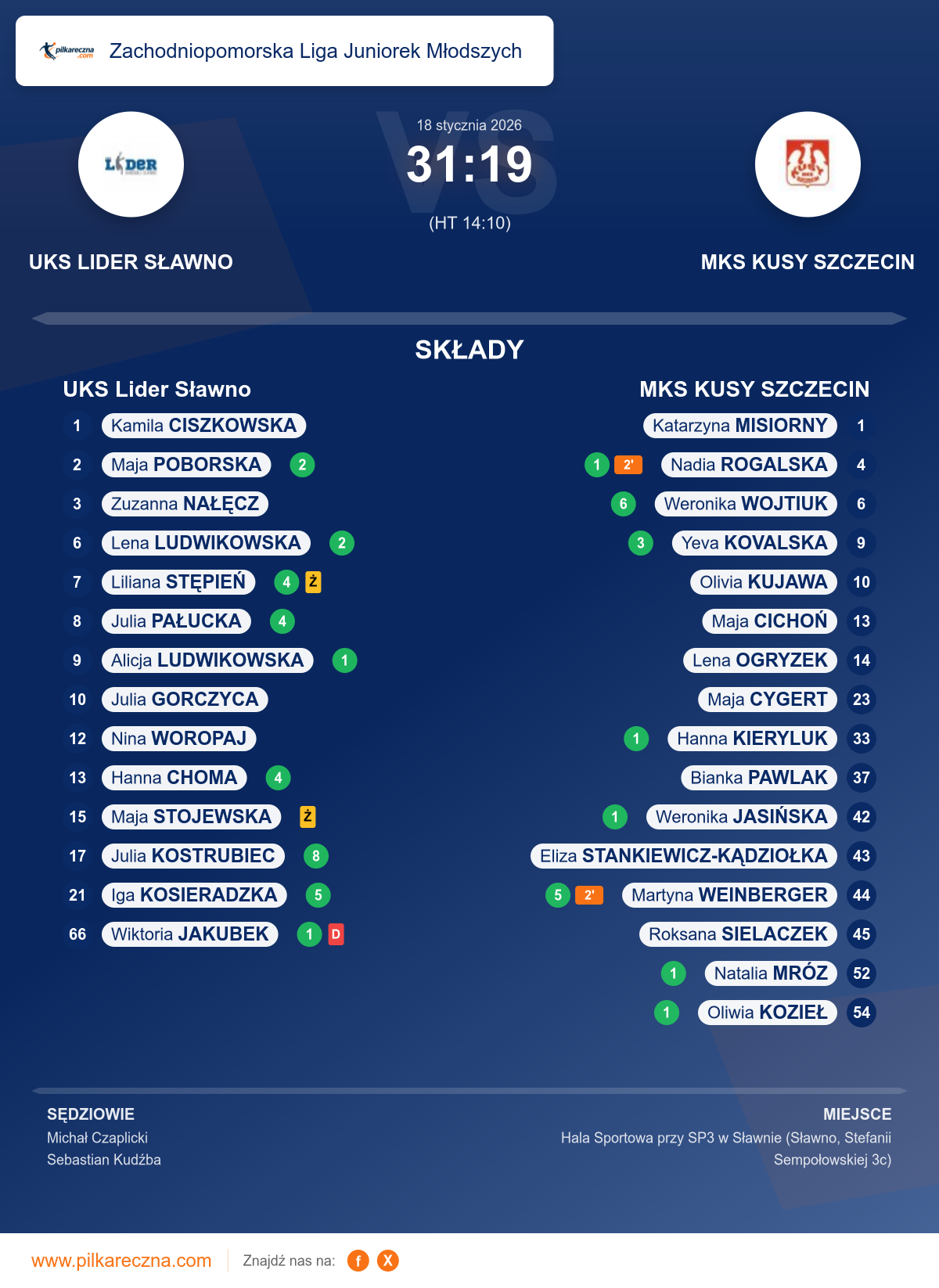 UKS Lider Sławno 31–19 MKS KUSY SZCZECIN
