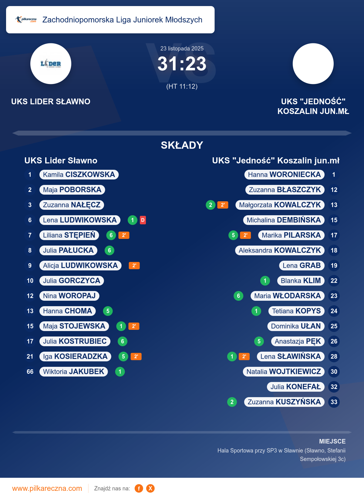 UKS Lider Sławno 31–23 UKS "Jedność" Koszalin jun.mł