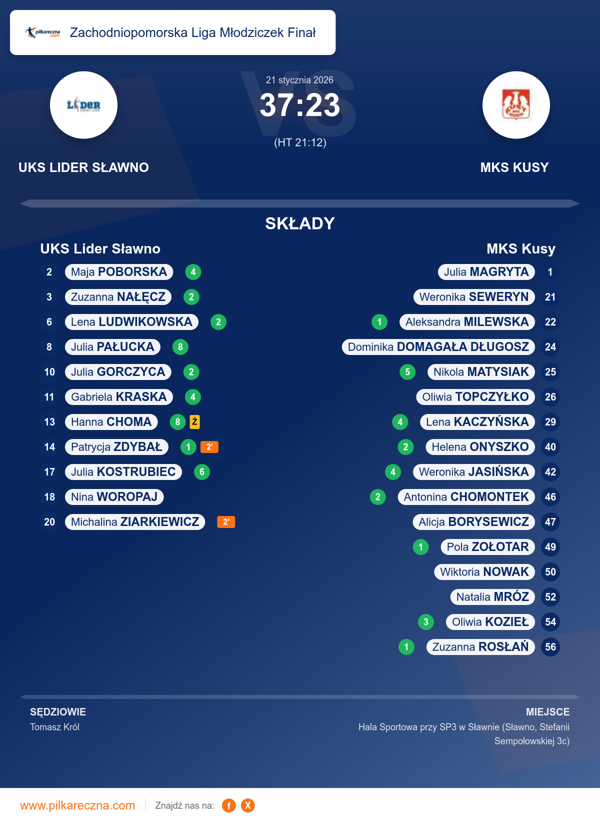 Zawodnicy: Nikola Matysiak (5), Lena Kaczyńska (4), Weronika Jasińska (4), Oliwia Kozieł (3), Antonina Chomontek (2), Helena Onyszko (2), Aleksandra Milewska (1), Pola Zołotar (1), Zuzanna Rosłań (1), Alicja Borysewicz, Dominika Domagała Długosz, Natalia Mróz, Oliwia Topczyłko, Weronika Seweryn, Wiktoria Nowak