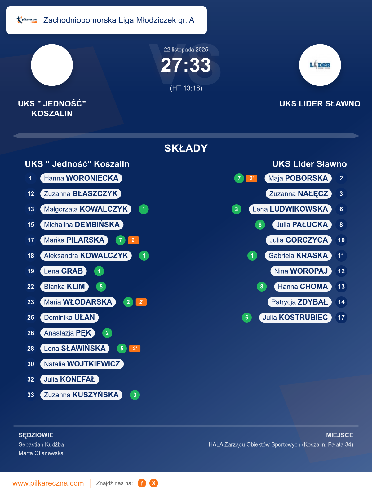 UKS " Jedność" Koszalin 27–33 UKS Lider Sławno