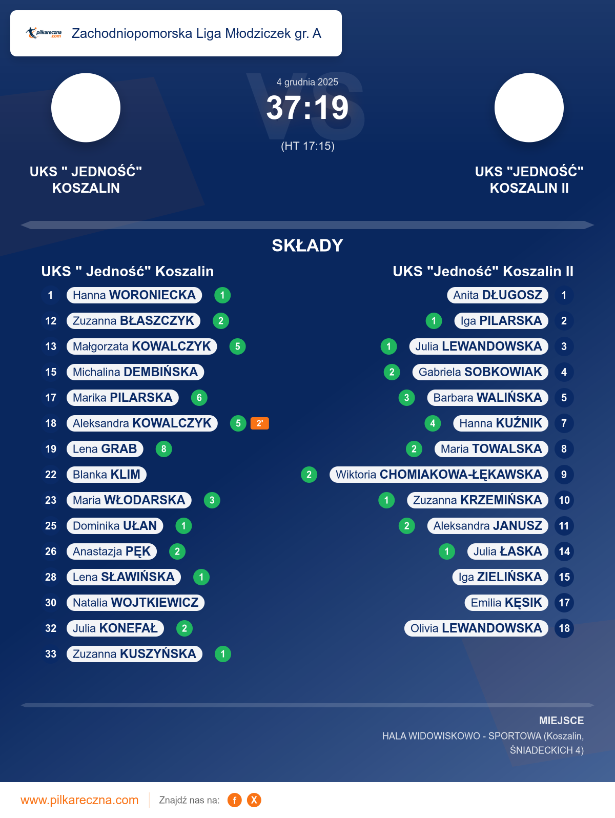 UKS " Jedność" Koszalin 37–19 UKS "Jedność" Koszalin II