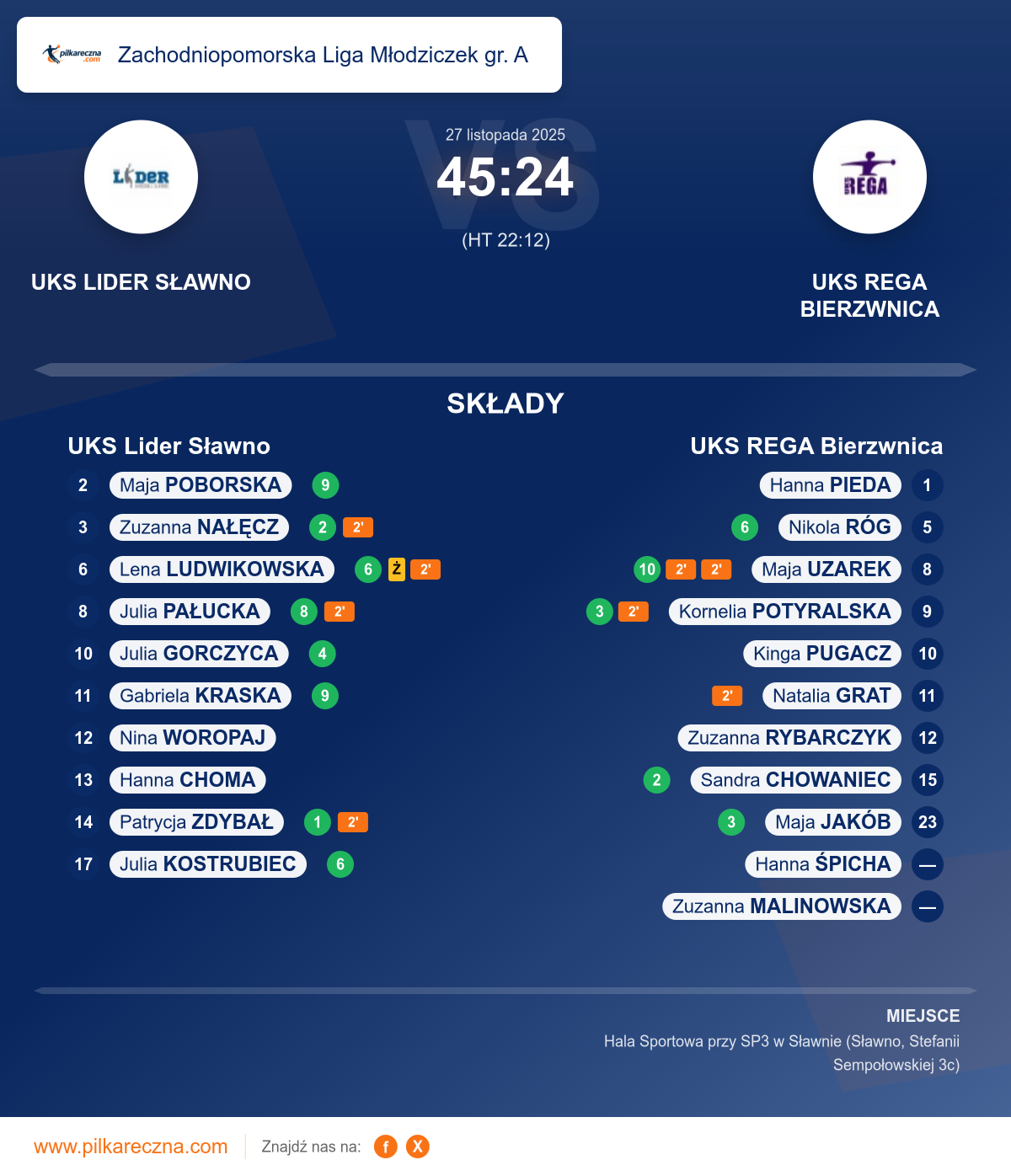 UKS Lider Sławno 45–24 UKS REGA Bierzwnica