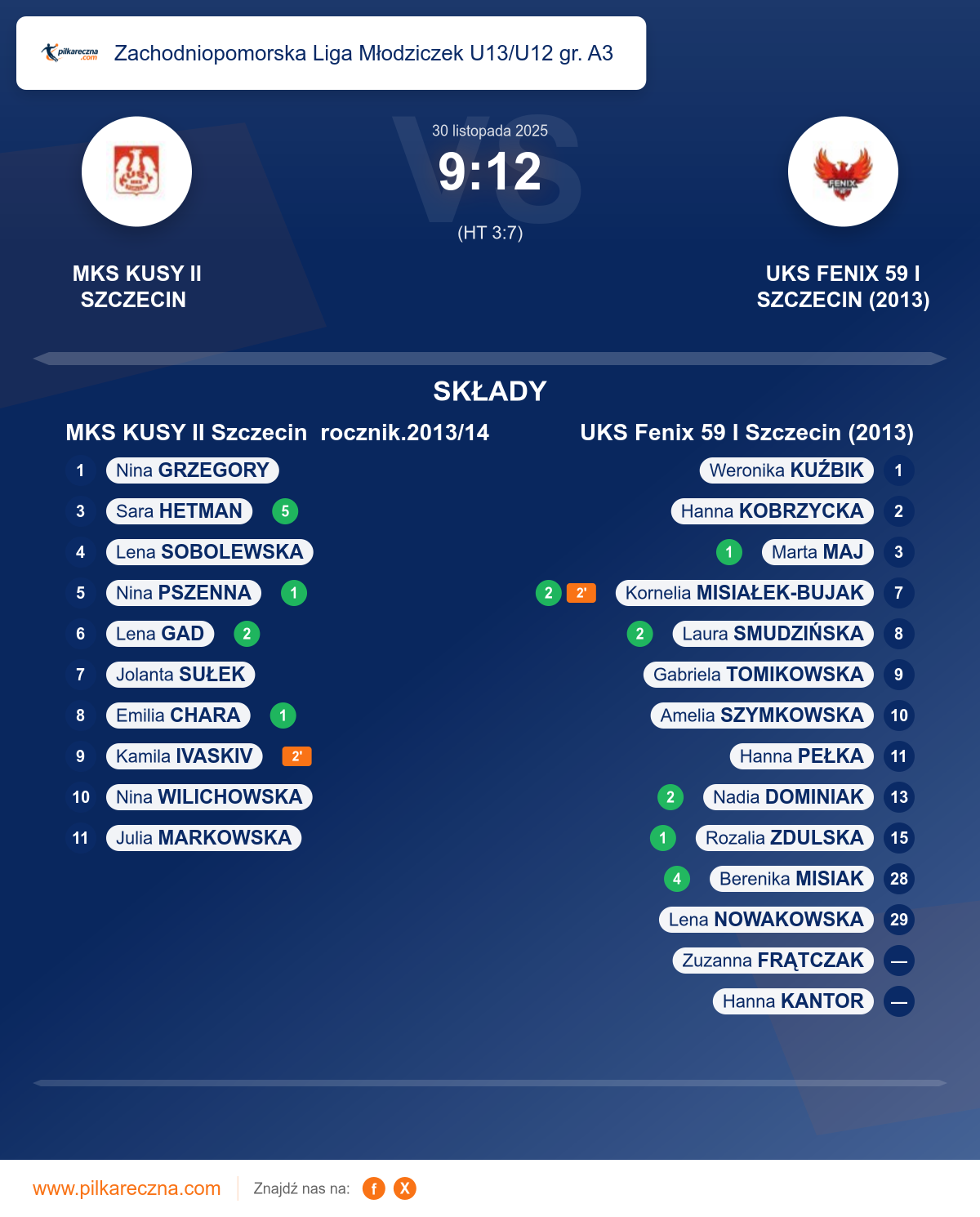 MKS KUSY II Szczecin rocznik.2013/14 — UKS Fenix 59 I Szczecin (2013)