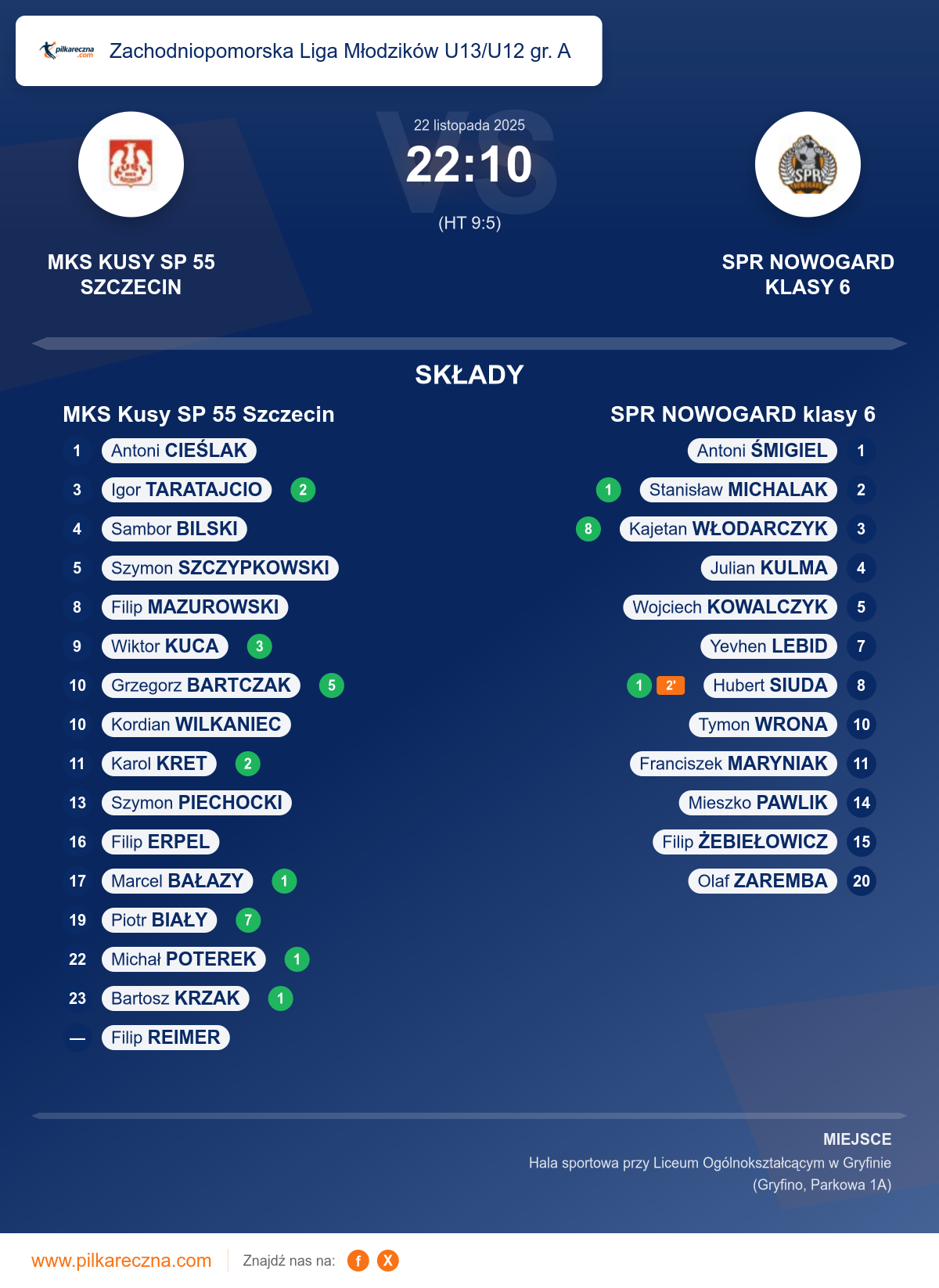MKS Kusy SP 55 Szczecin 22–10 SPR NOWOGARD klasy 6