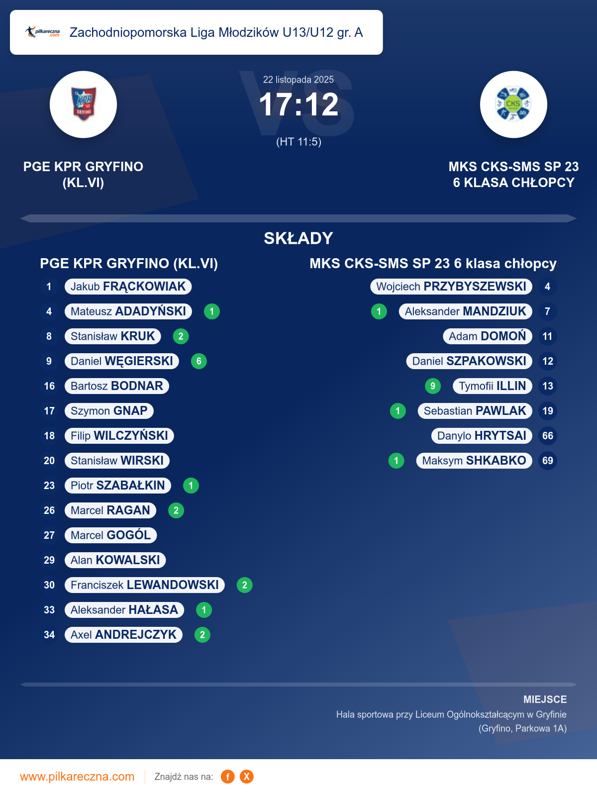 PGE KPR GRYFINO (KL.VI) 17–12 MKS CKS-SMS SP 23 6 klasa chłopcy