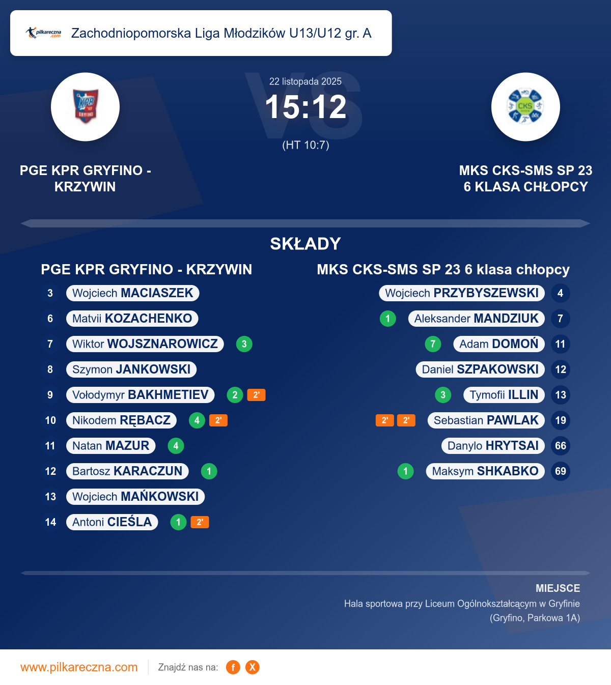 PGE KPR GRYFINO - KRZYWIN 15–12 MKS CKS-SMS SP 23 6 klasa chłopcy