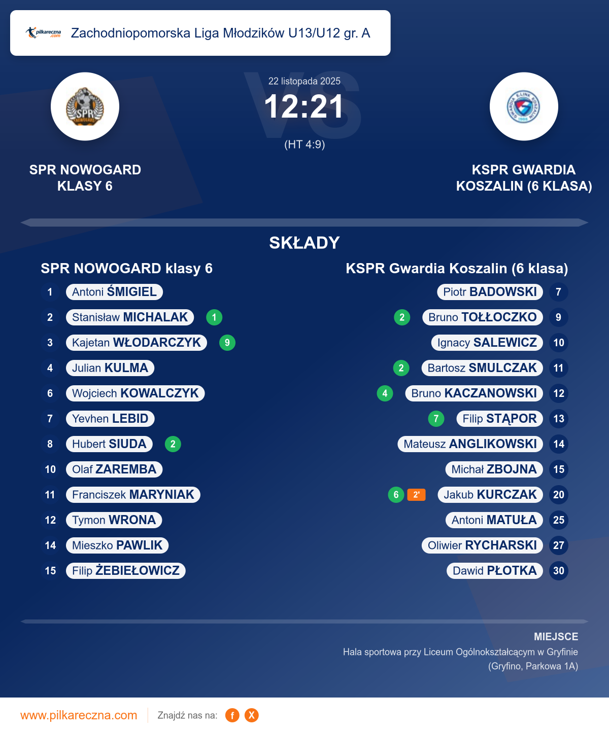 Bramkarze: Oliwier Rycharski