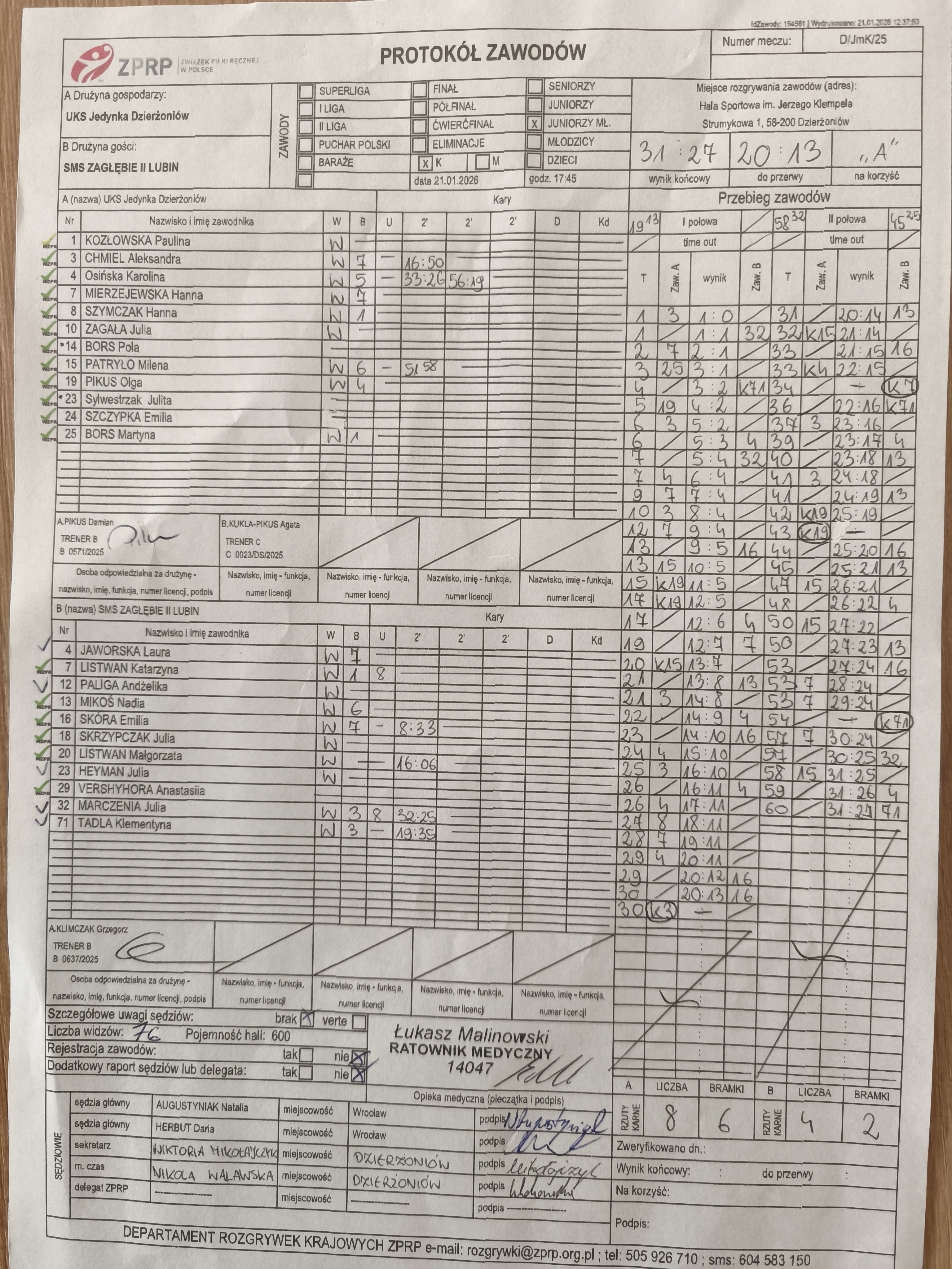 - Pierwszy: AUGUSTYNIAK Natalia